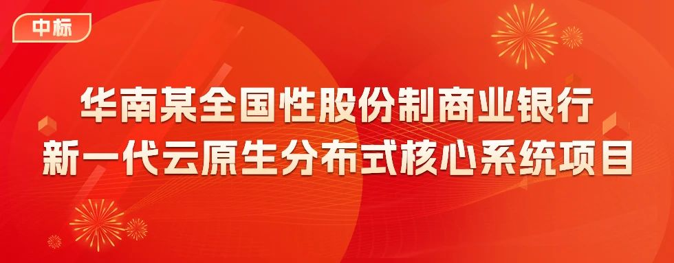 中电金信中标华南某全国性股份制商业银行新一代云原生分布式核心系统项目。项目范围包括技术平台、公共服务、零售存款等,本项目中,中电金信将基于金融级数字底座“源启”平台及分布式核心系统为该行构建新一代核心技术平台和应用,并以业务建模为驱动,建立从业务建模到IT设计、开发一体化实施工艺和工具链支撑体系。基于新平台和新工艺完成新核心应用微服务开发,单元化、容器化等工作,同时,保持外围系统无感并完成新老核心系统并行验证,最终实现该行新核心系统松耦合架构、服务颗粒化、职责单一化、运行隔离化、运营自动化目标,实现核心系统云原生转型,提升研发效能、实现敏捷交付。