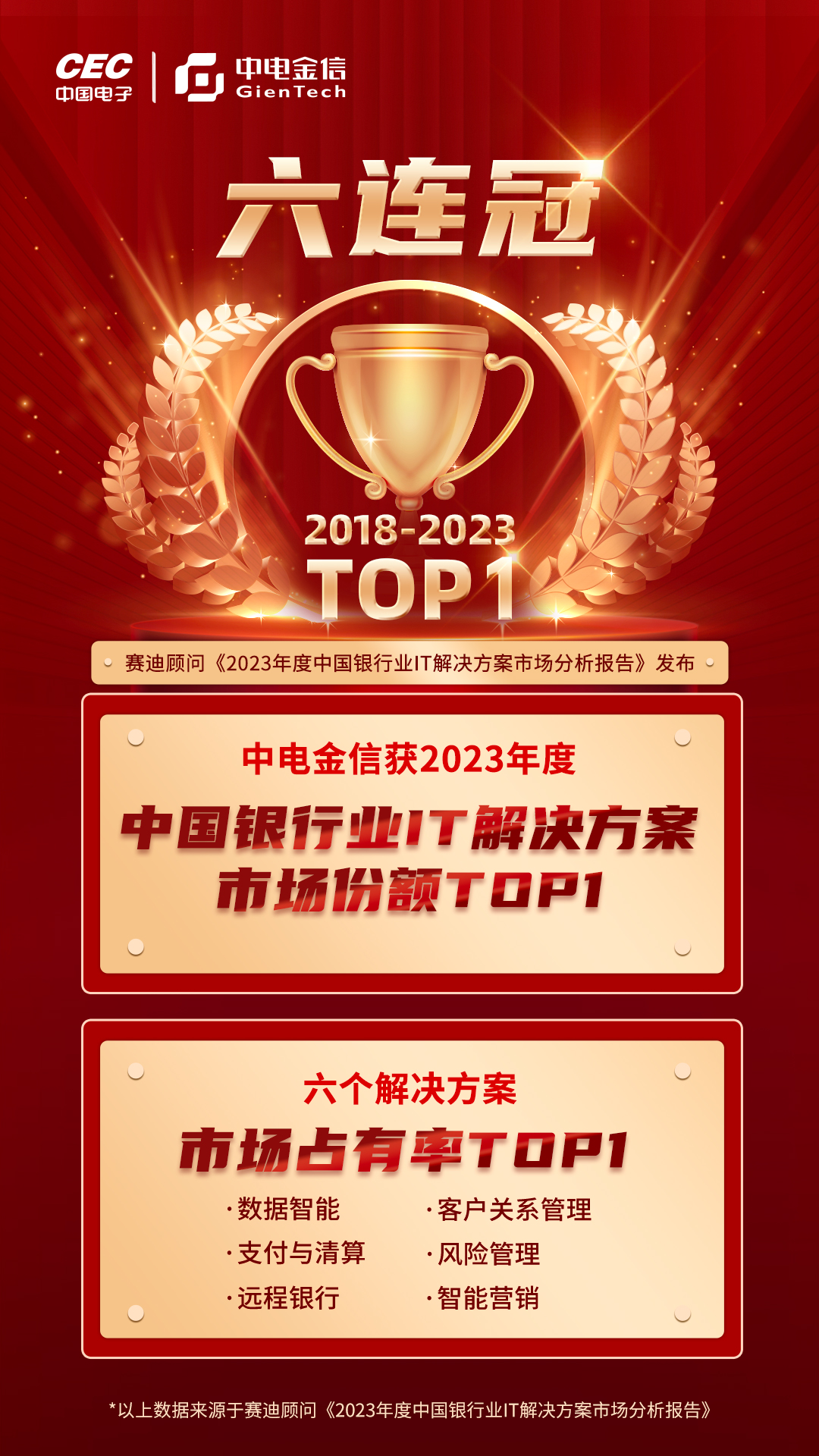 连续6年夺冠 6项细分领域第一,中电金信持续领跑中国银行业IT解决方案市场