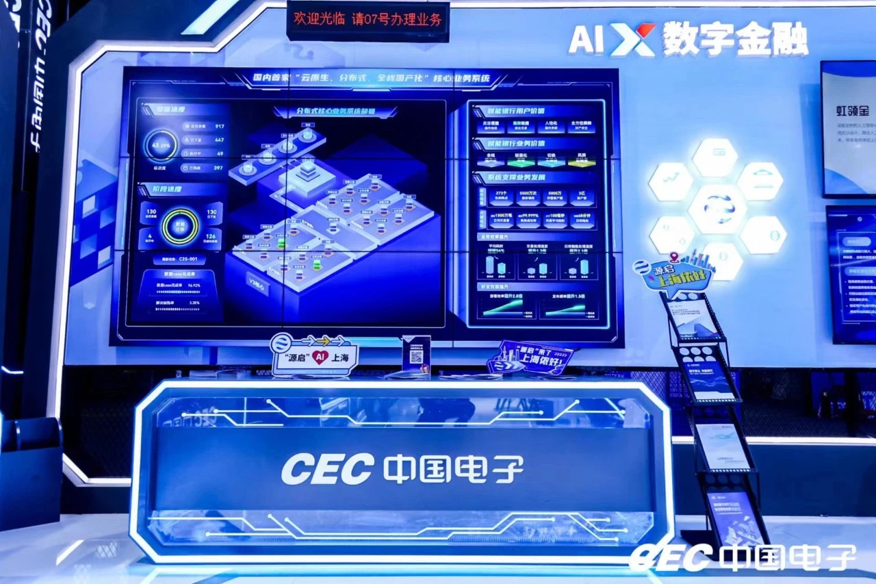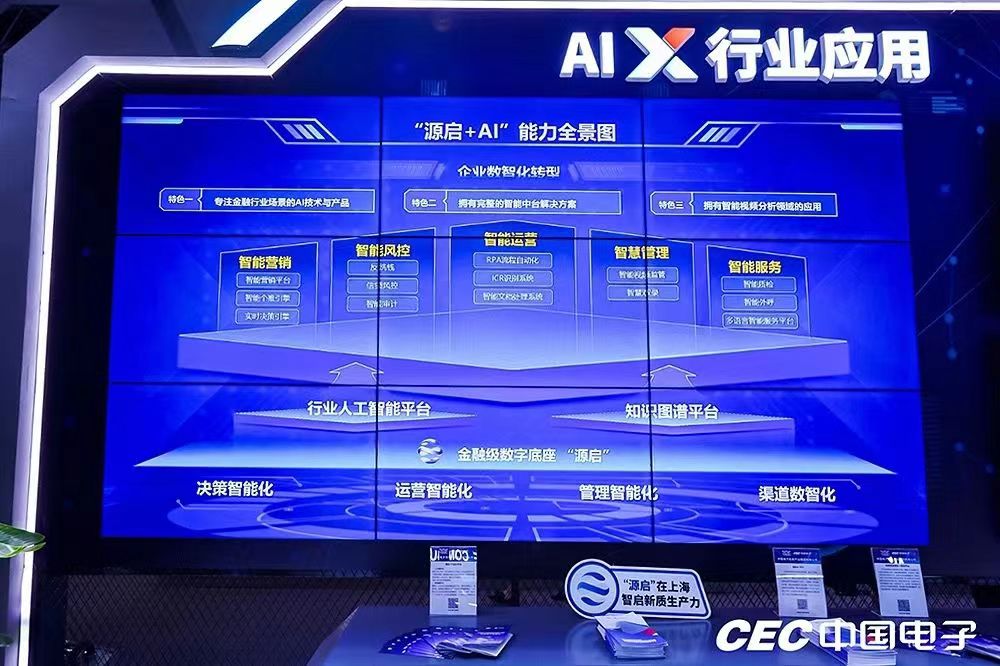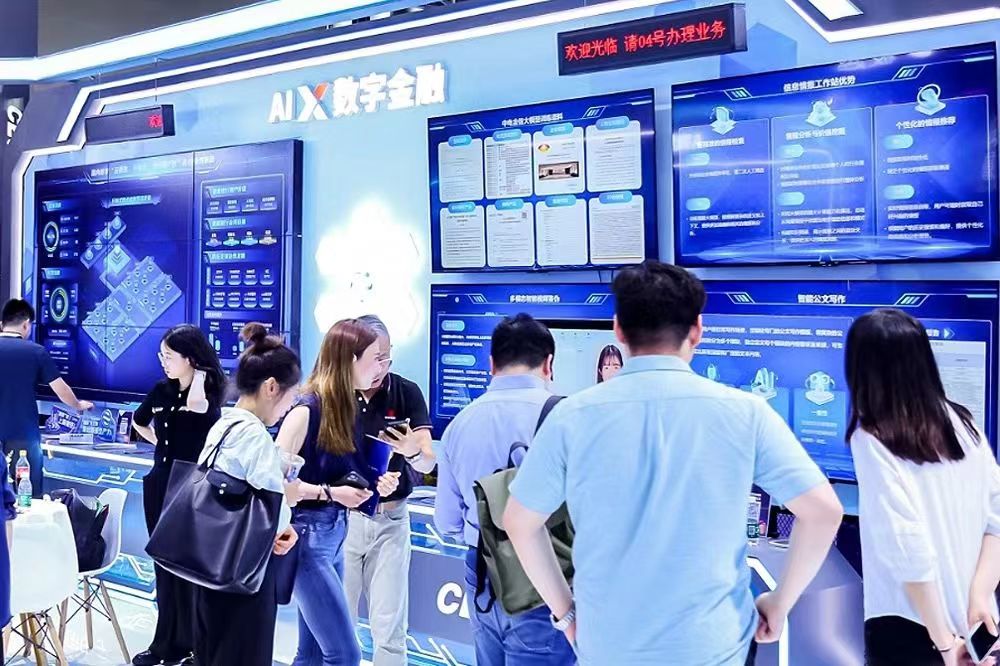 展会现场,中电金信带来了金融知识助手、智能风控、智能鉴伪、信息情报工作站、智能公文写作等AI应用,能够覆盖金融机构营销、渠道服务、风控、办公、研发等前中后台数字化经营关键环节,助力业务运营降本增效,进一步促进金融普惠化。