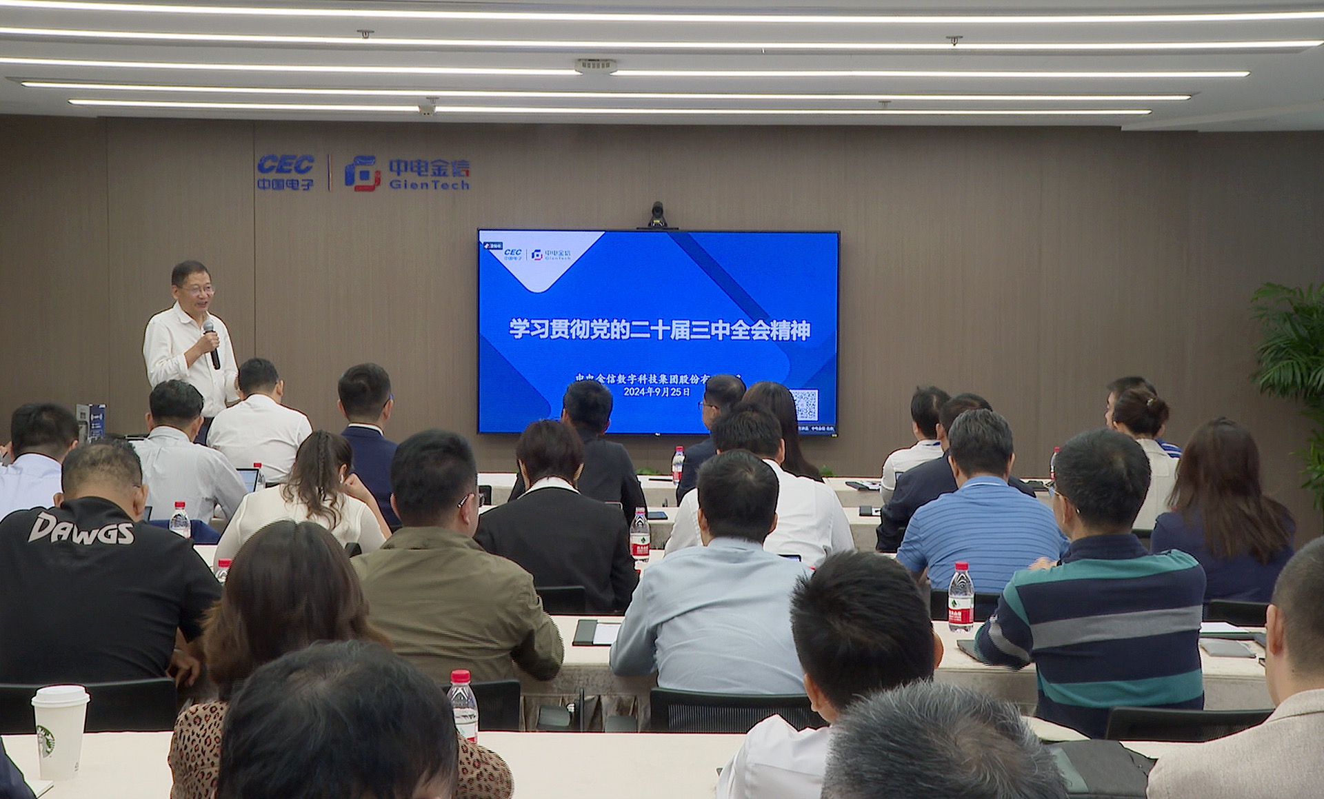 2024年9月25日,中电金信召开“学习贯彻党的二十届三中全会精神 深化‘源启’战略 加快打造我国新型数字基础设施”专题研讨会。中电金信常务副总经理(主持经营工作)冯明刚作主题发言。中电金信党委书记、董事长李刚作会议总结。中电金信党委及经理班子成员、中层以上干部及相关部门业务骨干、员工代表共计200余人参加会议。