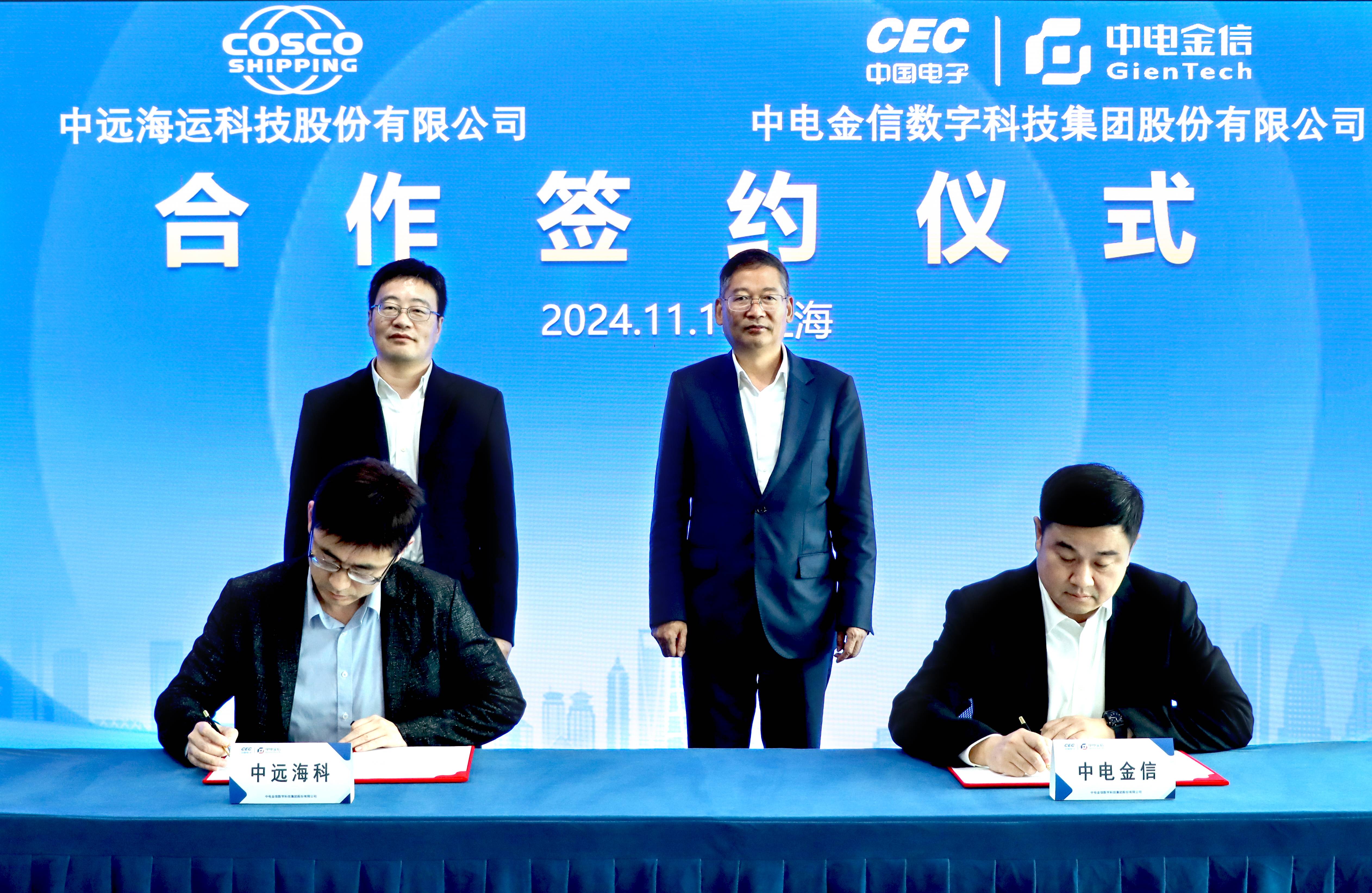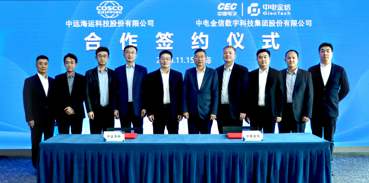 11月15日,中电金信数字科技集团股份有限公司(以下简称:中电金信)与中国远洋海运科技股份有限公司(以下简称:中远海科)在上海签署合作协议。中电金信将依托新型数字基础设施“源启”,和以“源启”为支撑的行业数字基础设施、业务咨询、应用软件的产品及服务体系,深度融合中远海科的航运数字化领域核心优势,共同打造行业解决方案,助力金融、航运业数智化转型。