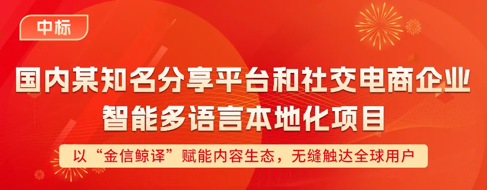 中电金信将为国内某知名分享平台和社交电商企业提供覆盖英语、马来西亚语、日语等语言的本地化服务,同时为客户全球化内容生态接入“金信鲸译”云端翻译管理平台,并依托AI技术赋能的精准本地化解决方案,深度助力客户深耕全球市场,打通内容传播、跨境电商与社区互动的全球链路,推动平台优质内容与商家资源高效触达全球用户。