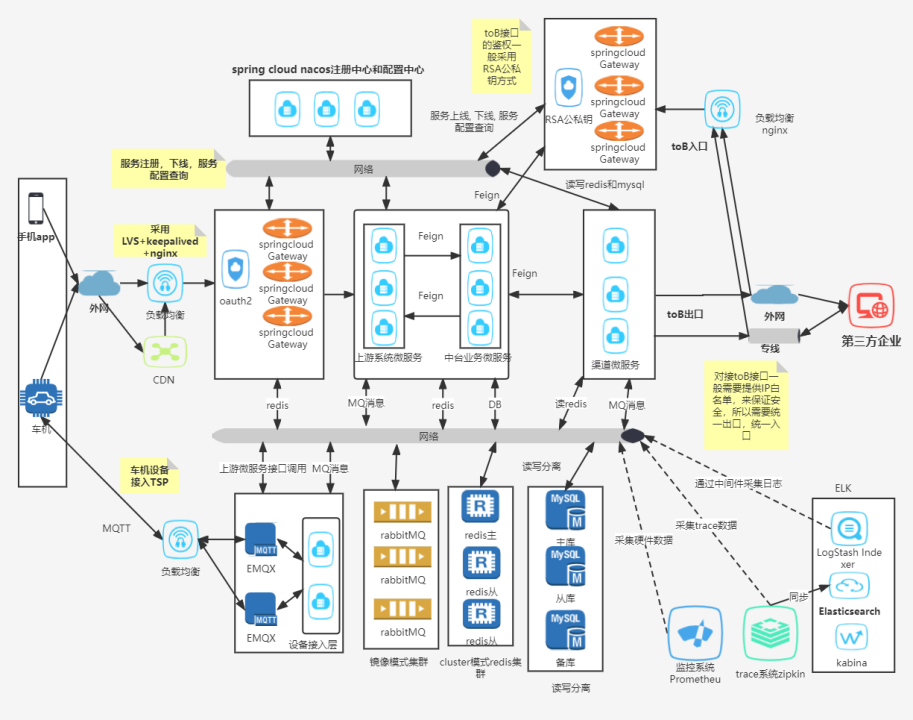 实现面向生产线、国家监控平台、企业自有平台、售后服务平台、其他业务平台提供核心车联网支持服务;