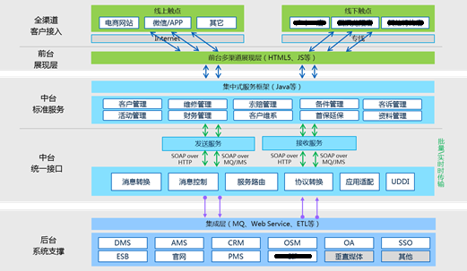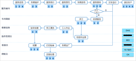 某汽车厂店既存售后管理系统功能不足,导致在售后服务过程中,不同的角色需操作不同的系统,甚至于一个角色操作多个系统。从系统架构层面来看,根本原因为旧系统呈离散、分布式架构,存在诸多问题。