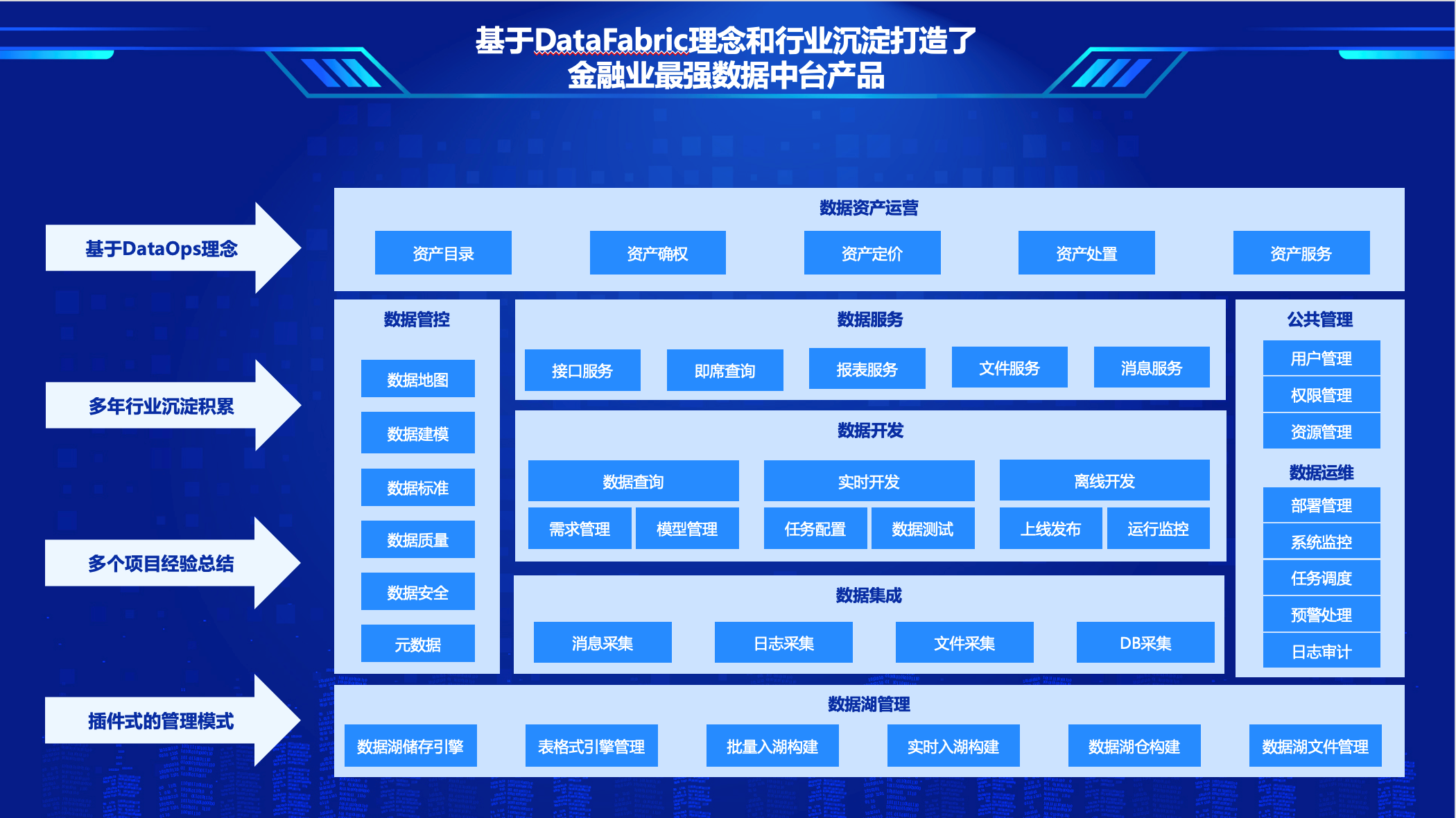 结合多年在金融行业数据应用咨询及实施的经验,中电金信解决方案体系涵盖具备湖仓一体混合架构能力的数据平台,支持客户分析、风险防控、数据分析等,解决方案广泛应用于财务管理、监管合规等场景。