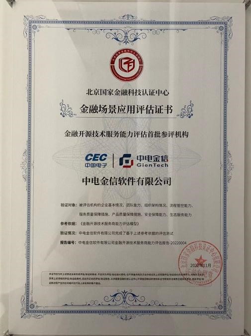 为《关于规范金融业开源技术应用与发展的意见》相关工作部署,引领金融业开源技术健康可持续发展,近日,由北京国家金融科技认证中心牵头成立的“金融业开源技术应用与发展联合实验室”正式揭牌启用,并公布首批十家共建单位,中电金信成为该实验室首批共建单位之一。同时,中电金信还通过了金融开源技术服务能力评估,成为首批通过国家金融科技认证中心评估的服务商之一。