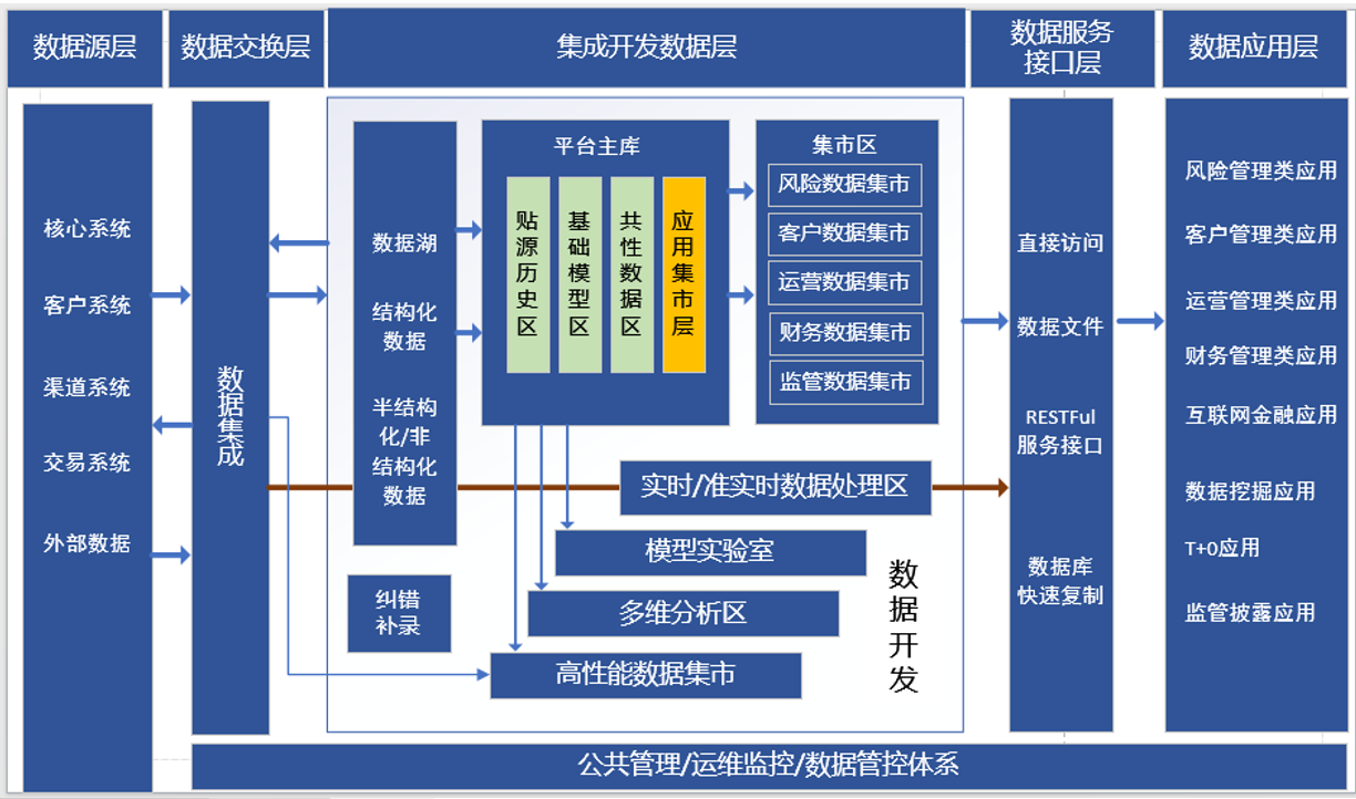 根据客户现状,并结合我司在多个类似项目中所积累的行业经验,整体规划数据资产项目,此平台由历史数据存储、数据整合平台、数据应用层、数据应用门户、调度监控、运维管理组成。按此规划,基于数据资产管理平台产品的基础数据平台将成为全集团唯一的BI系统数据的来源和供应方。