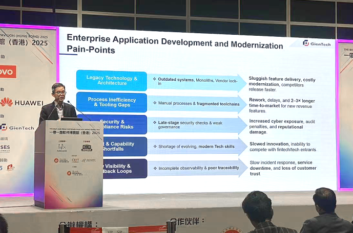 聚焦全球数智化机遇挑战,共话香港国际创科中心建设,共探行业发展未来,8月21日—23日,中电金信精彩亮相香港“一带一路软件博览会2025”,带来AI领域实践成果,中电金信高级副总裁汪毓盛出席了智慧金融论坛,并分享了关于如何利用人工智能技术解决IT系统性难题的前沿见解。