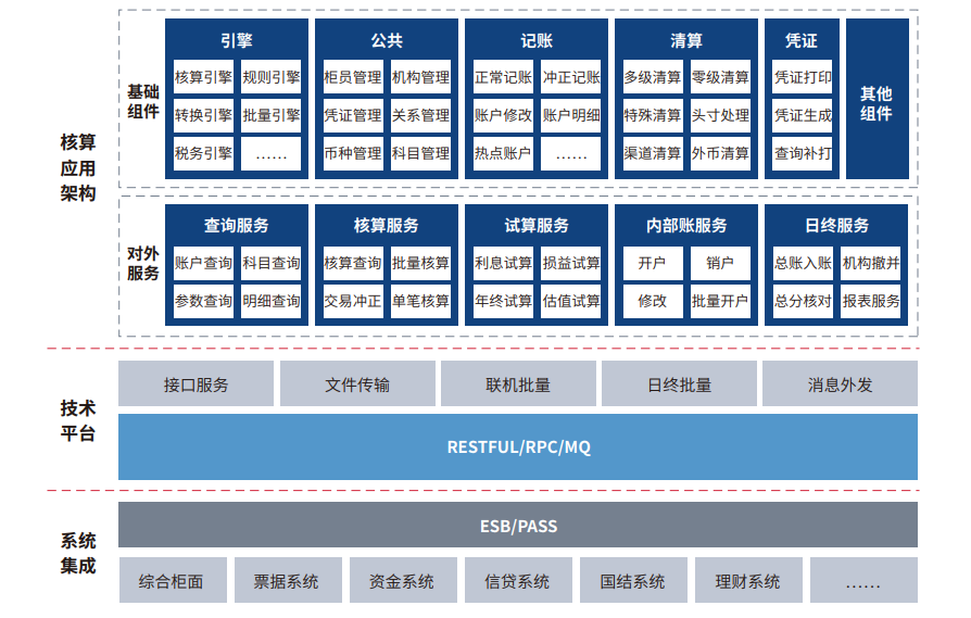 中电金信会计核算系统支持交易和核算分离(包括读写分离),支持单独部署,提高系统的灵活和可拓展性,减少核算对实时交易的影响,支持可视化规则定制,提高客户体验;支持全行级统一核算,及时税价分离,内部账及科目管理等功能;具有多种编程语言,支持基于strom思想的高可用、高可靠、高并发的处理能力;能够高效完成核算处理,为银行日终、年终处理节省大量时间。