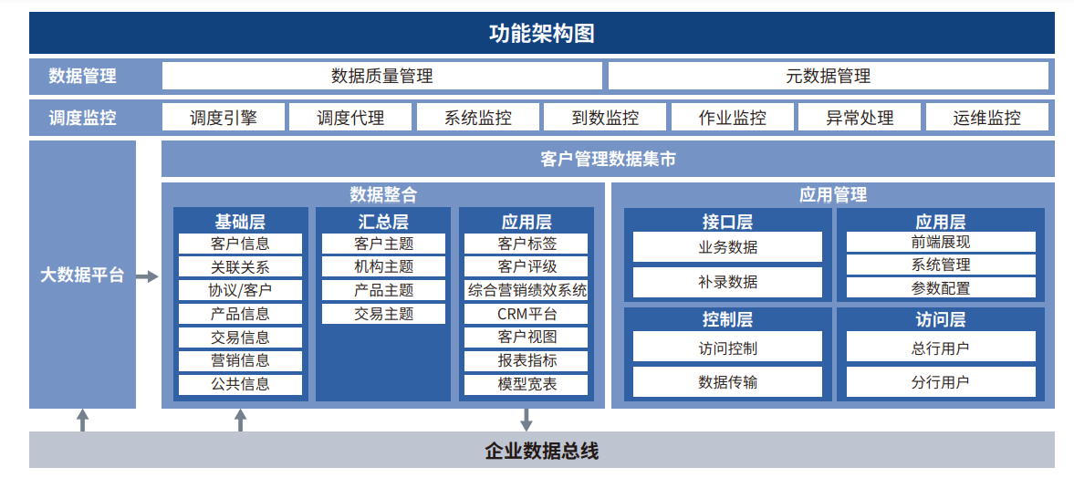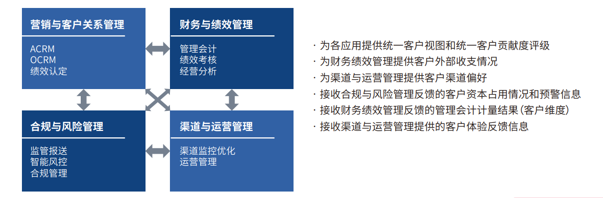 中电金信客户管理数据集市系统以统一客户、业务驱动、有效管控、前瞻性考虑为原则,以应用场景为验证,实现真正的以客户为中心的业务经营发展。系统统一客户编号、统一客户基础分析指标,充分考虑金融机构内外部数据,具有完备的标签和指标体系,实现信息的高效传递和有效监控,具有鲜明的特色,在市场竞争中具有绝对优势。