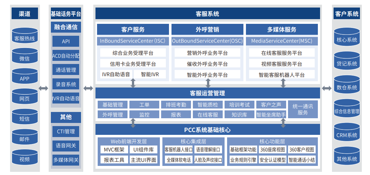 融合AI能力,可接入电话、APP、视频、微信等全渠道,具有来电弹屏、智能语音识别、通话录音等功能,全面支撑金融机构核心系统、借贷系统、理财系统等业务咨询
