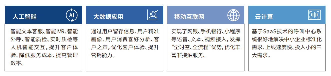 系统涵盖智能客服、智能IVR、智能质检、空地一体化营销等功能,应用人工智能、大数据应用等领先技术,实现多渠道接入,有效帮助银行提升服务质量和用户体验,降低服务成本。