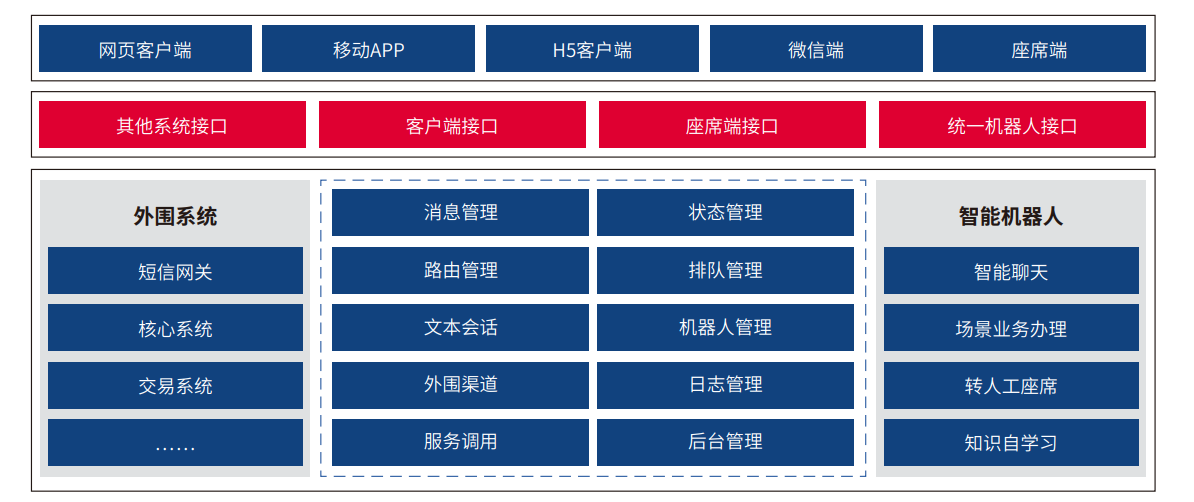 中电金信智能文本客服引入人工智能技术,准确识别客户意图和需求,快速解答客户问题,节约人力成本。可对接手机银行、网银、营销 APP、微信等多种渠道,为银行网络直销业务和互联网金融业务发展提供有效的平台支撑,是客户打造综合服务平台不可或缺的工具,直接提升客户体验。