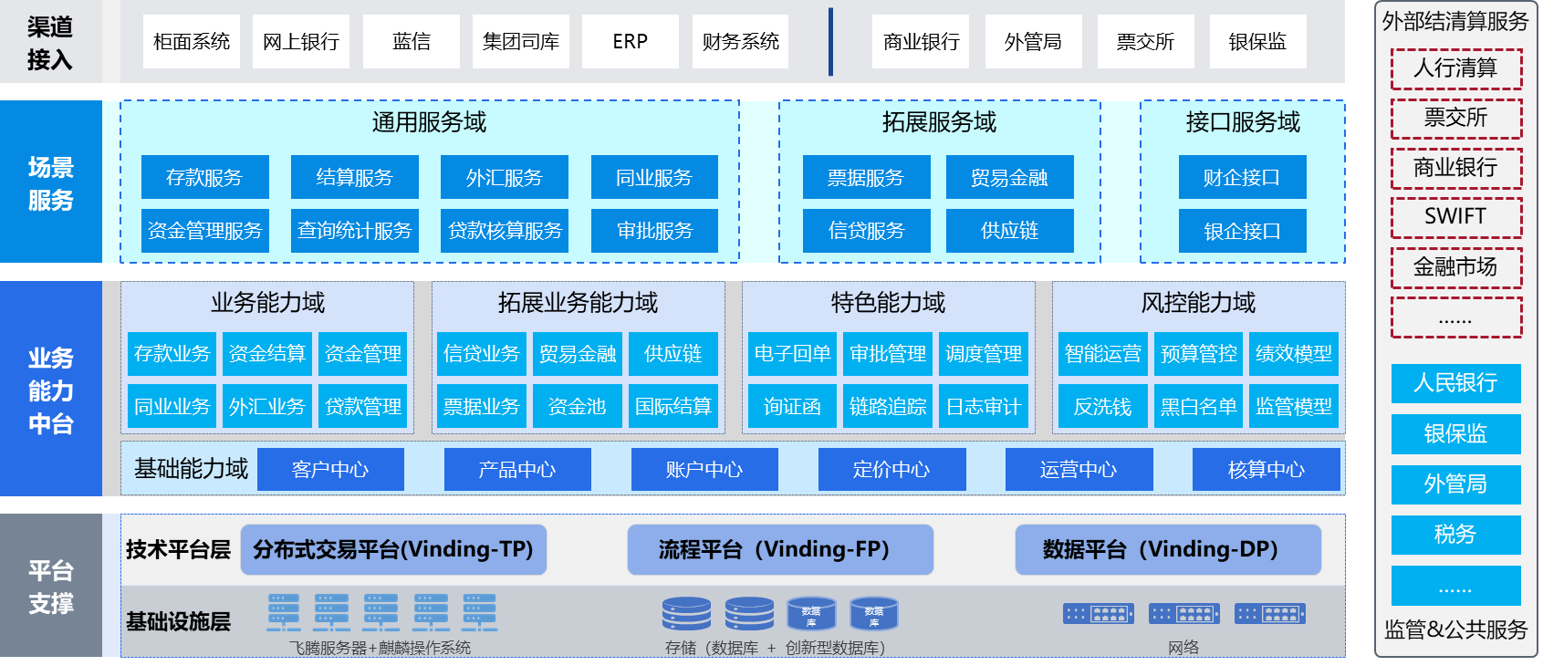 采用基于微服务的分布式架构,充分解耦,实现弹性扩展,保证业务持续、稳定、可靠运营;业务服务组件化,实现敏捷扩展,为财务公司业务创新和服务创新提供强有力支撑。