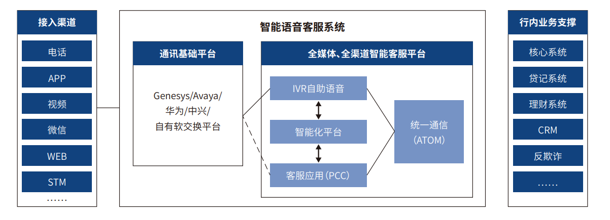 中电金信智能语音客服以通讯基础平台为支撑,融合AI能力,可接入电话、APP、视频、微信等全渠道,具有来电弹屏、智能语音识别、通话录音等功能,全面支撑金融机构核心系统、借贷系统、理财系统等业务咨询,提高服务效率,降低运营成本。