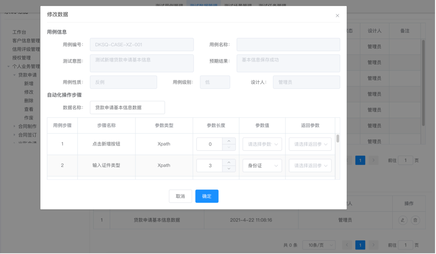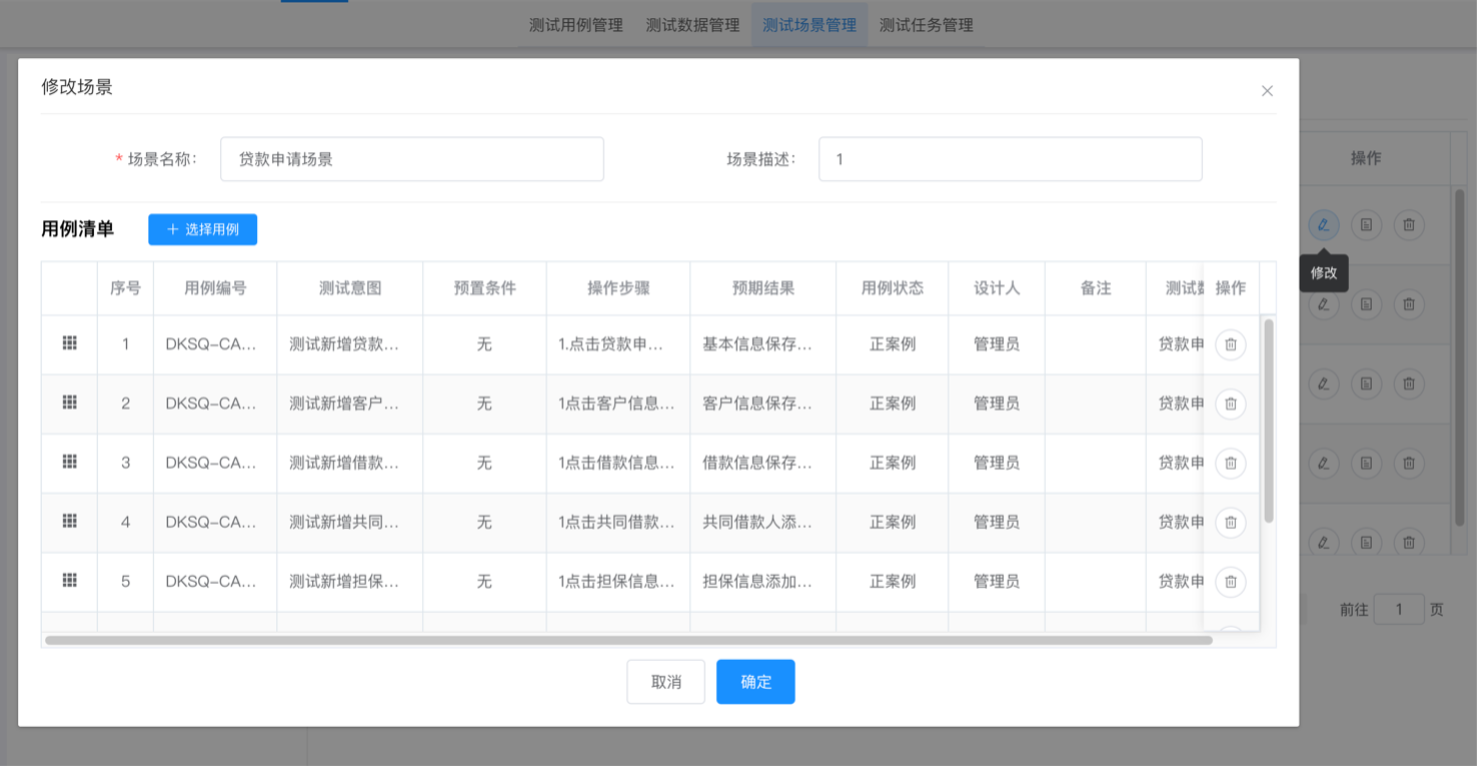 测试场景管理:测试场景对应的是实际的业务场景,可以由多用例组成,用例之间可以设置执行顺序及数据传递。