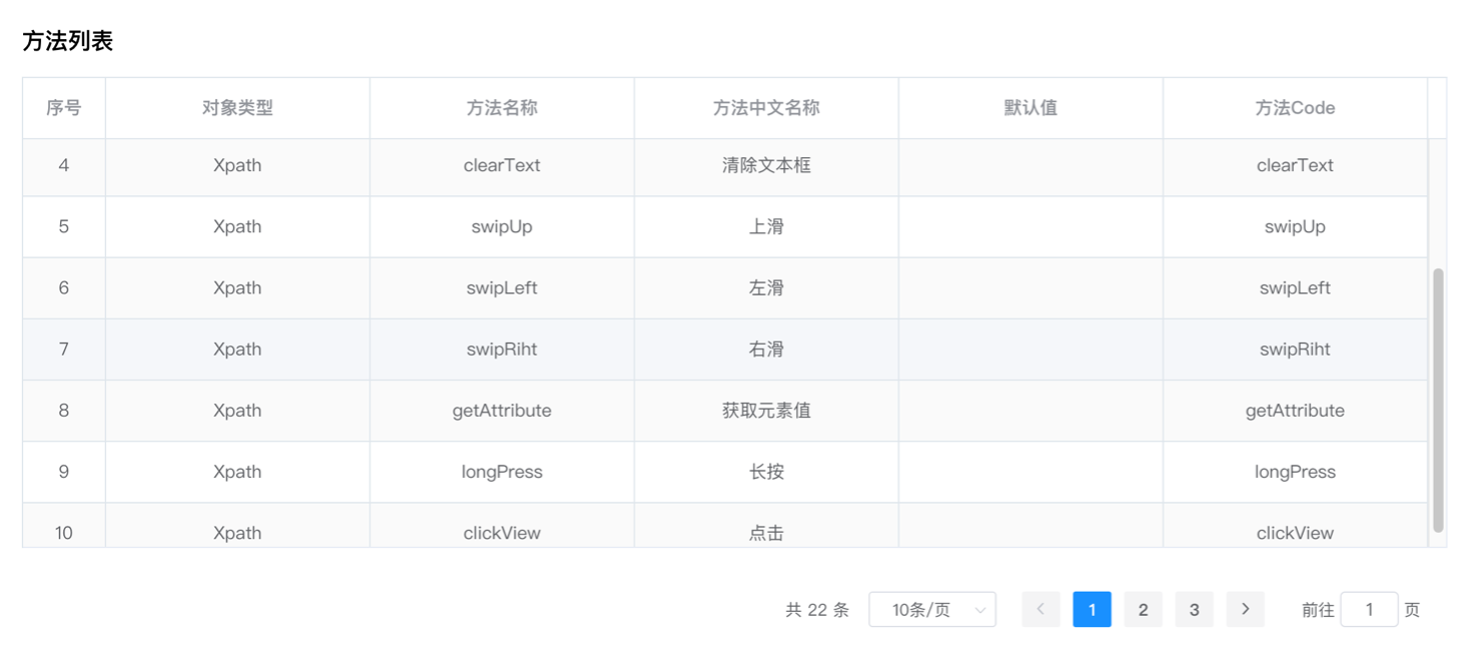 测试方法管理: 测试方法提供了常用页面元素的操作,也可以通过IDE自定义关键字。