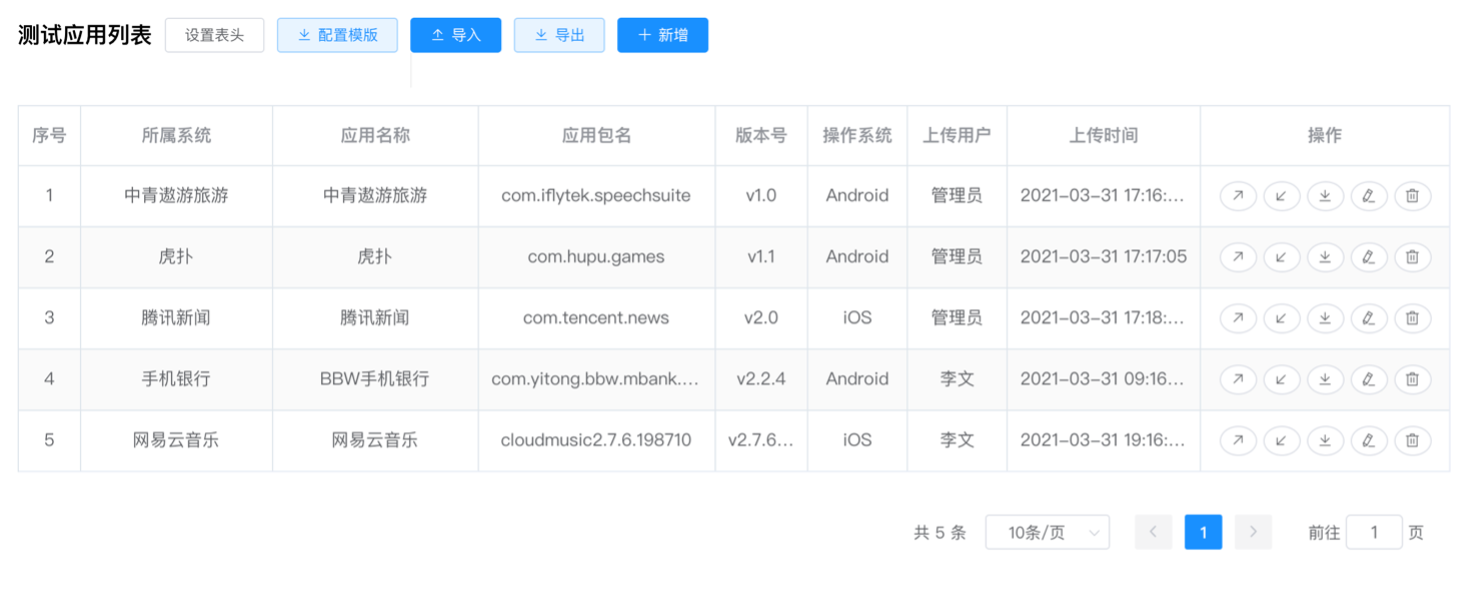 测试数据管理: 脚本执行时需要执行测试数据,支持单组或多组数据执行,可以批量导入。
