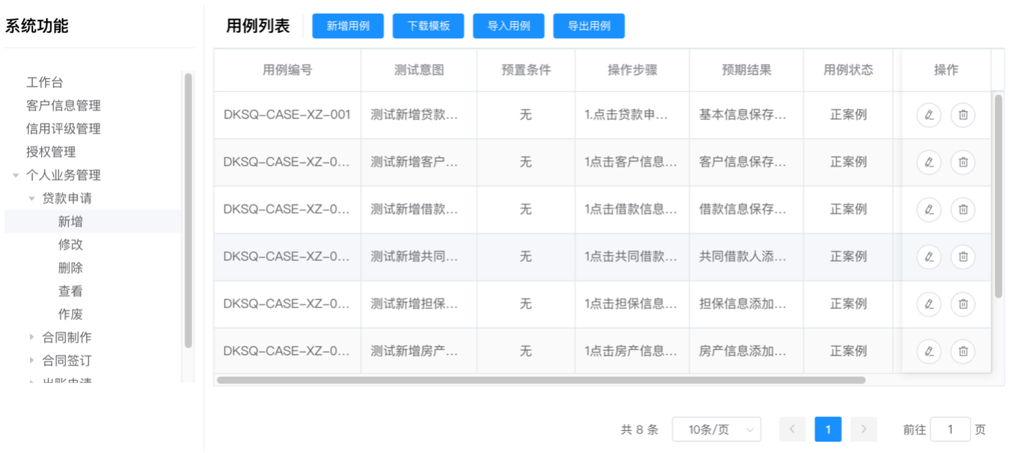 测试用例管理: 测试用例可以使用模板功能进行快速导入,提高录入效率。