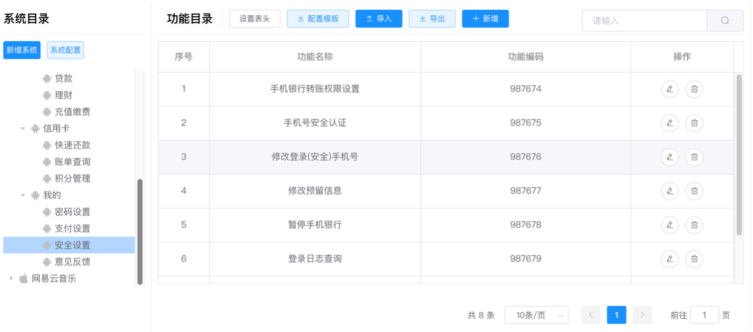 系统功能管理:系统功能管理可以设置系统、功能、模块的结构关系。